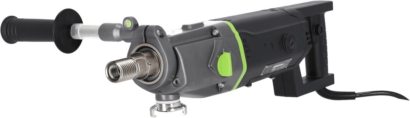 Stalco kjarnaborvél fyrir sérhæfð byggingar og endurnýjunarvinnu sem felur í sér stórboranir þá mun DDP202 kjarnaborvélin reynast gagnleg. Þetta er gæða byggingarverkfæri með 2200 W afli og hámarkshraða upp á 2600 snúninga á mínútu. Þetta gerir þér kleift að vinna á skilvirkan hátt með demantsgötum með allt að 202 mm þvermál. DDP202 demantborvélin er búin snældu með tvöföldum skrúfgangi, þ.e. 1-1/4 og 1/2 tommu. Þetta gerir kleift að festa demantsborana eða annan fylgihluti með mismunandi gerðum handfanga á öruggan og öruggan hátt. Rafmagnsrofi og rafeindakerfi fyrir stöðugleika til sjá um vinnuöryggi. DDP202 demantsborvélin er bæði blaut og þurr og hún er einnig með tengingu fyrir ryksugu.